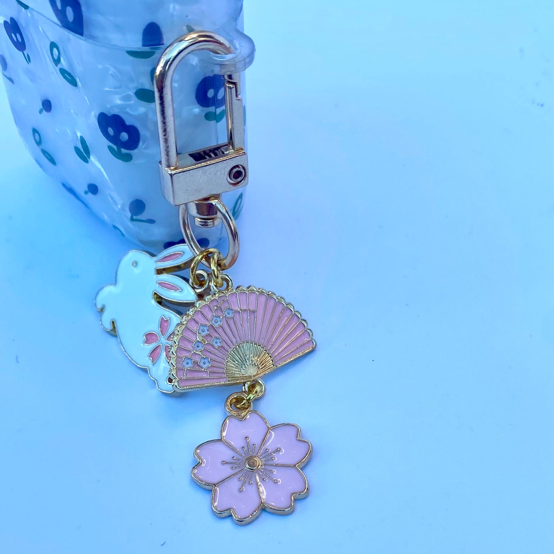 Cute kawaii bunny fan phone charm sakura keyring bag tech earbud case decoration