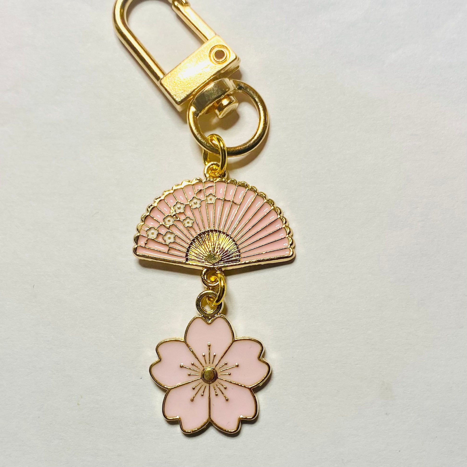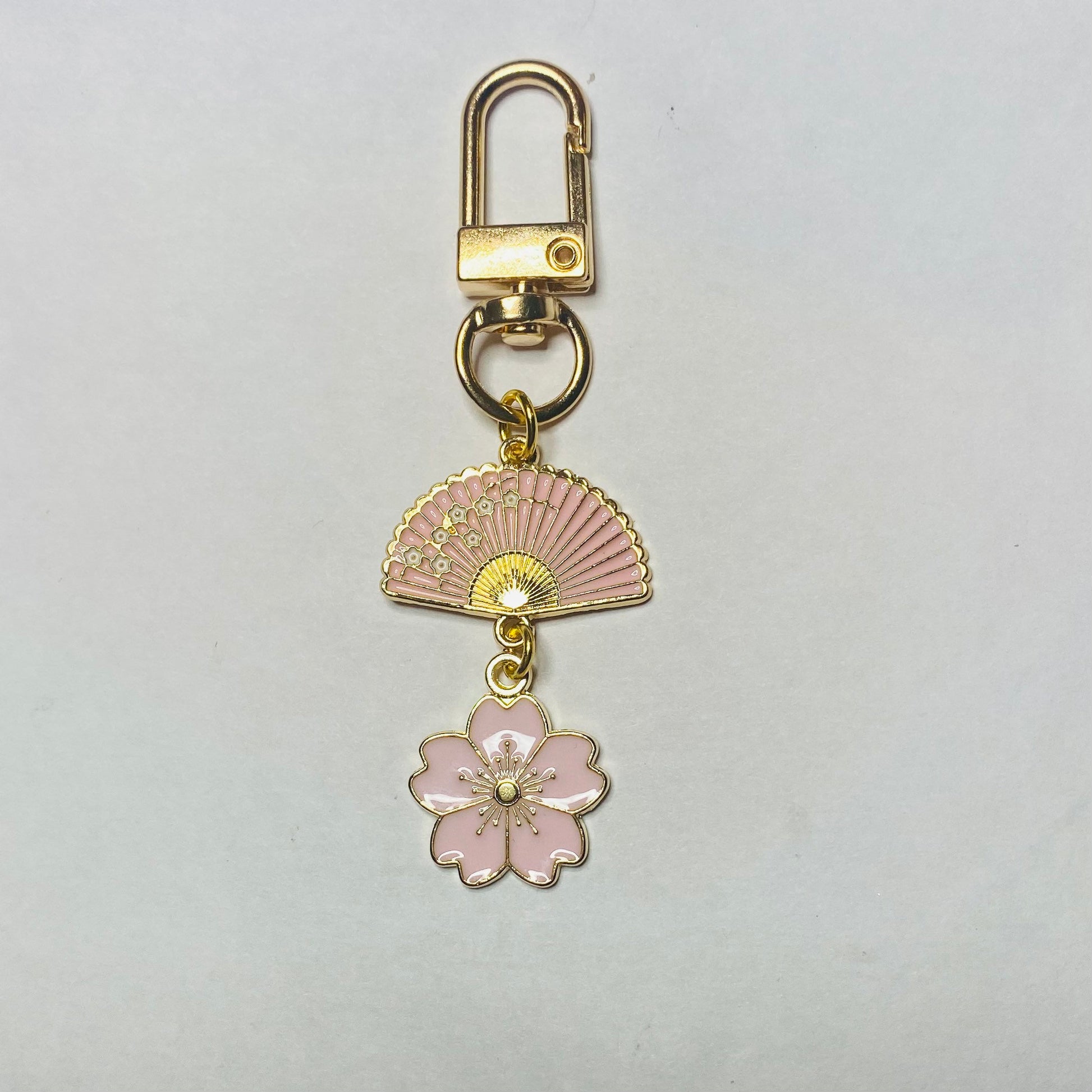 Colourful simple Sakura vintage fan flower phone case charm clip take your good luck with you! Pretty enamel gold colour backed charms.