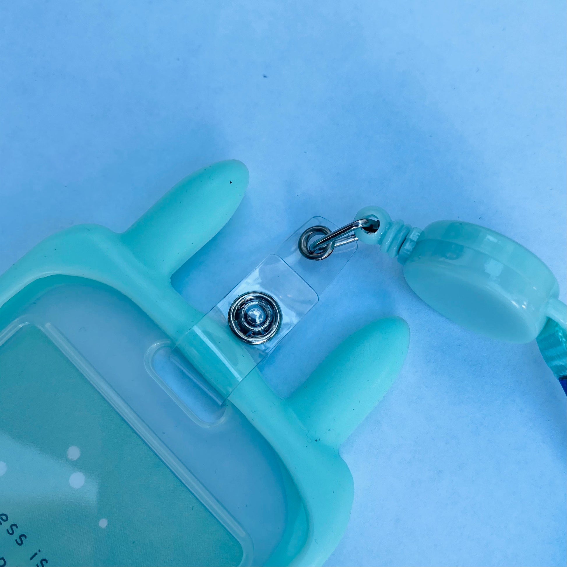 Pastel green rubber edged pass cover with ears with clear plastic front and back . Great badge holder ID / bus pass travel pass uni/student /work card. Great to keep bank card / k pop photo card safe from weather on bag or worn round neck