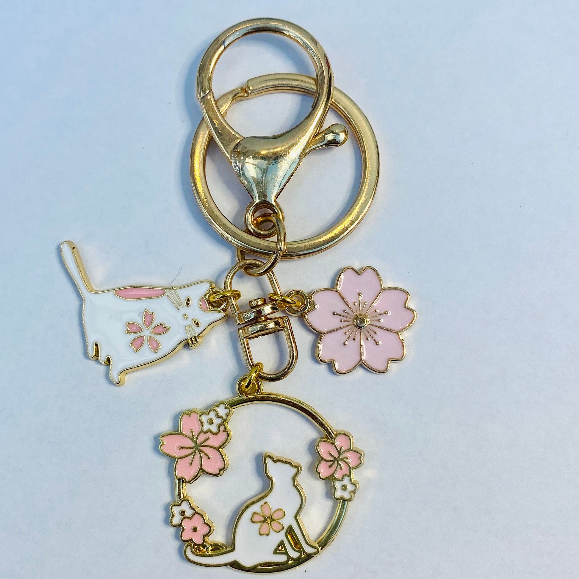 Kawaii sakura anime cat heart keyring phone charm keychain gym bag accessory