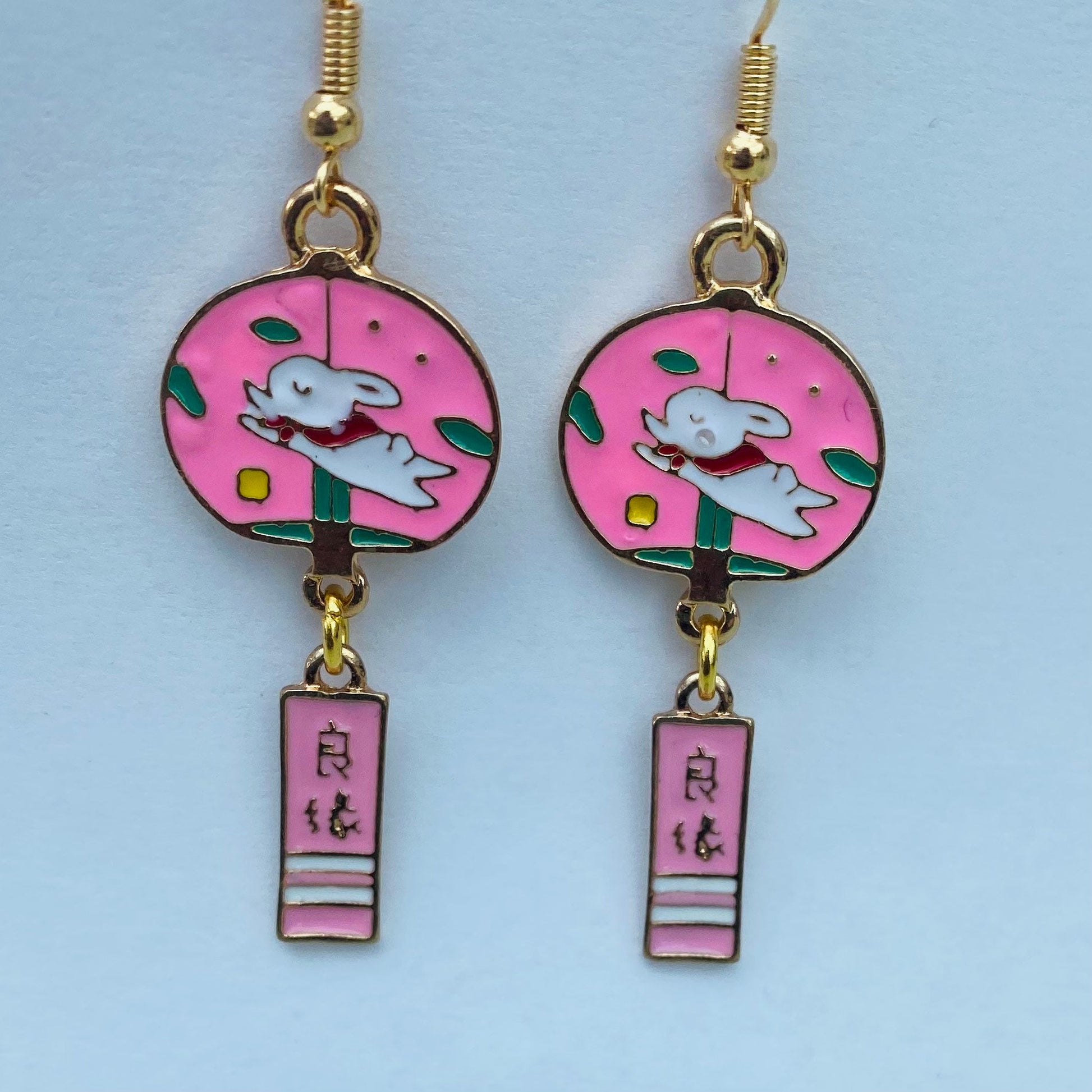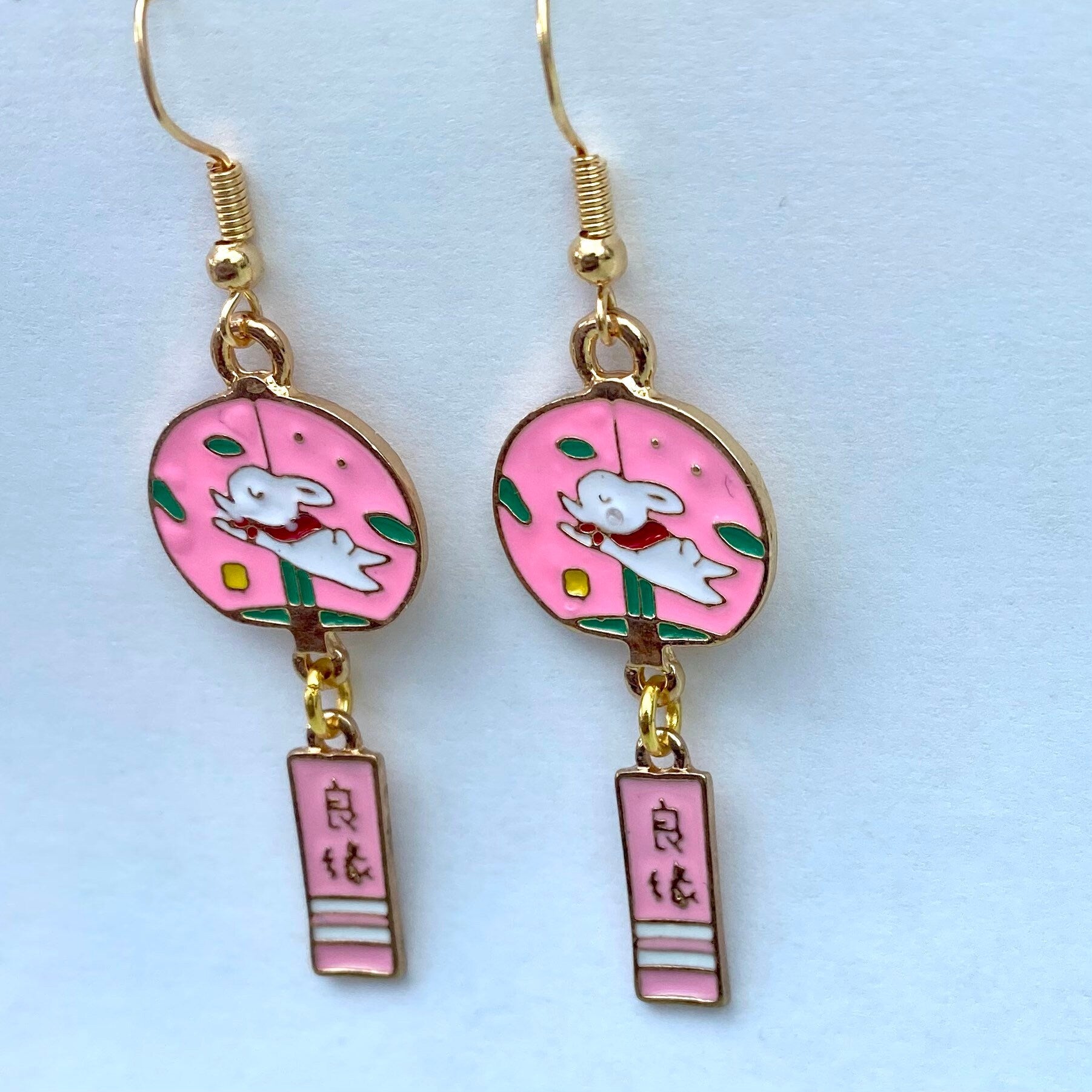 Japanese/Korean style good lucky rabbit bunny moon blessing tag earrings