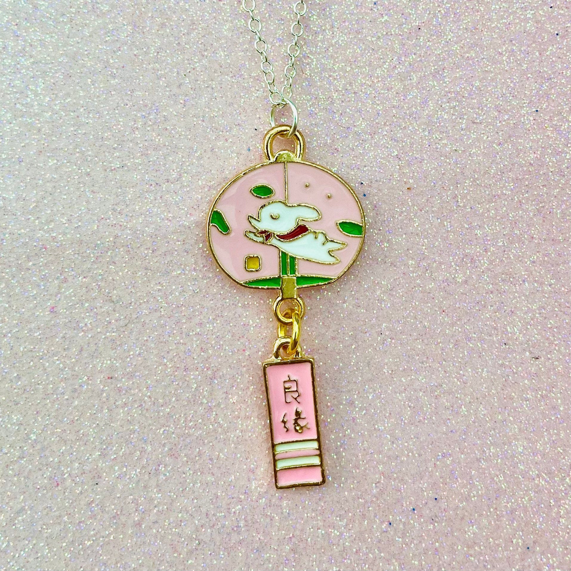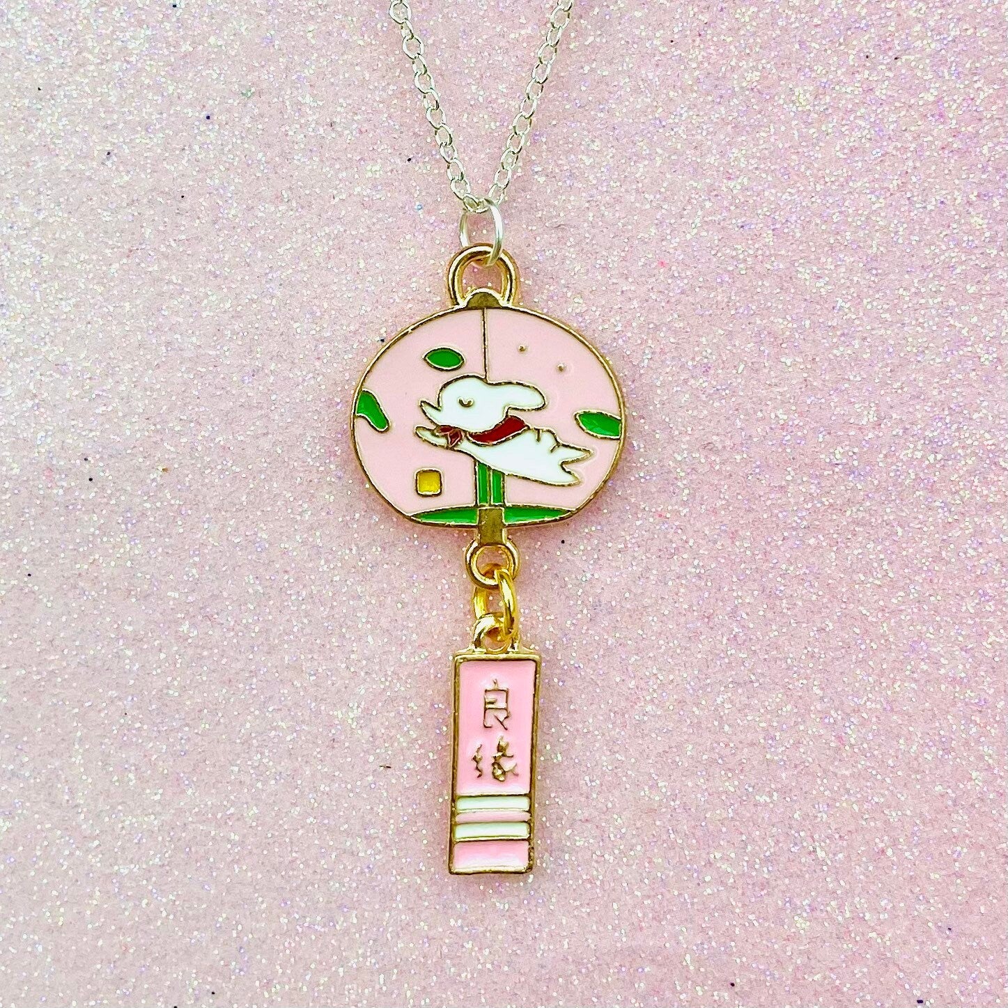Kawaii lucky bunny necklace Japanese Sakura rabbit blessing bell drop silver chain