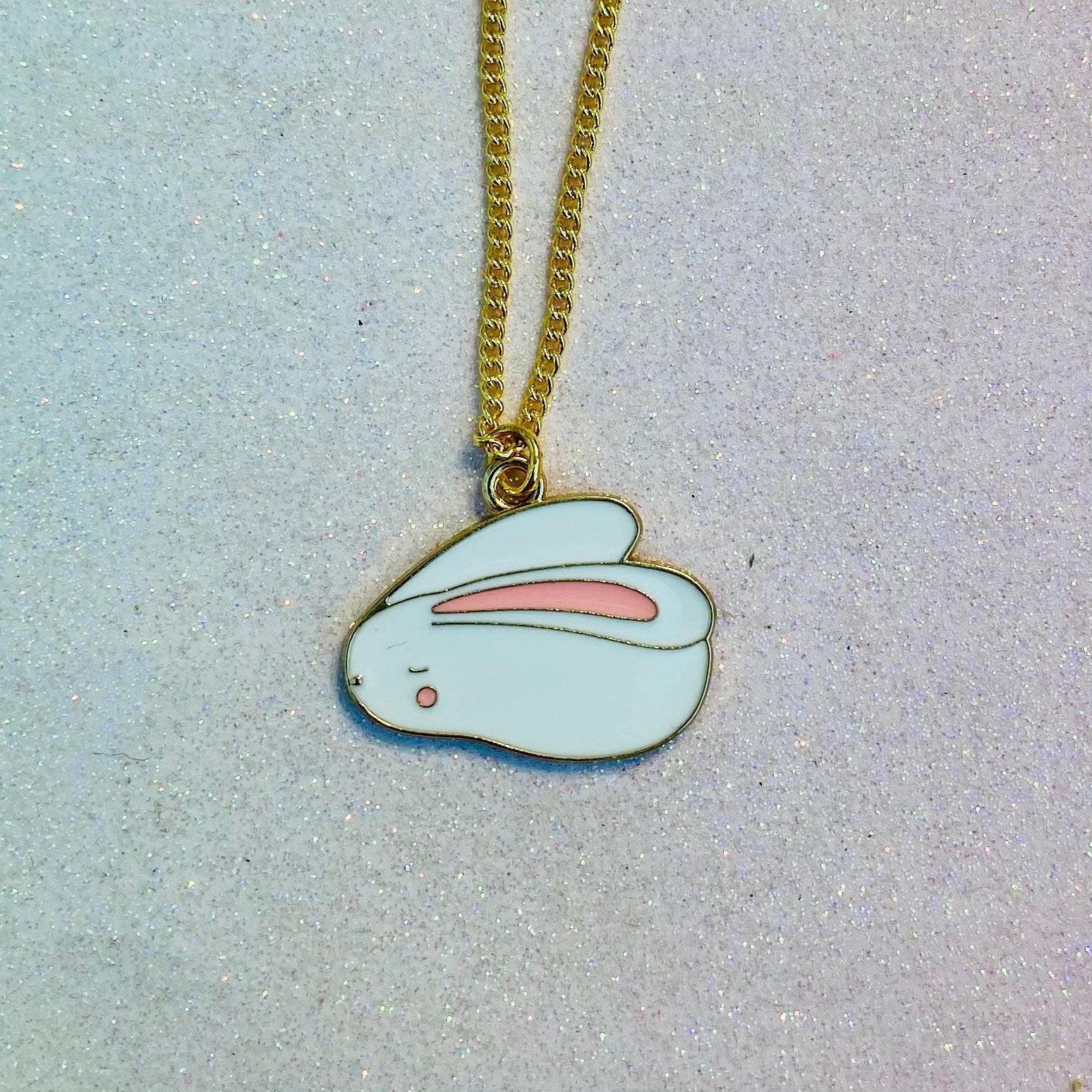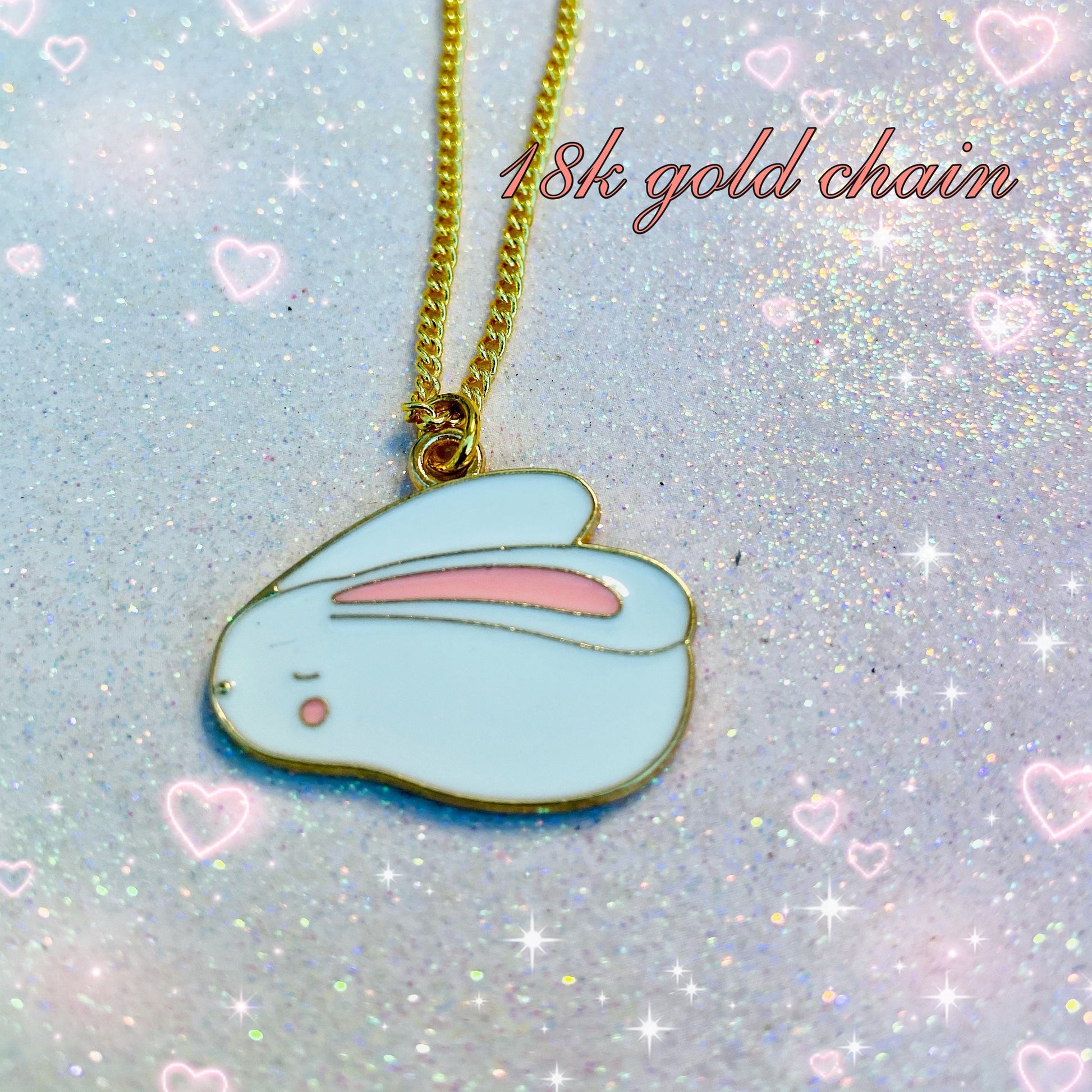 Kawaii sleepy moon bunny 18k gold gf chain enamel charm necklace cute lucky animal star pink hobi handmade cute gift for her