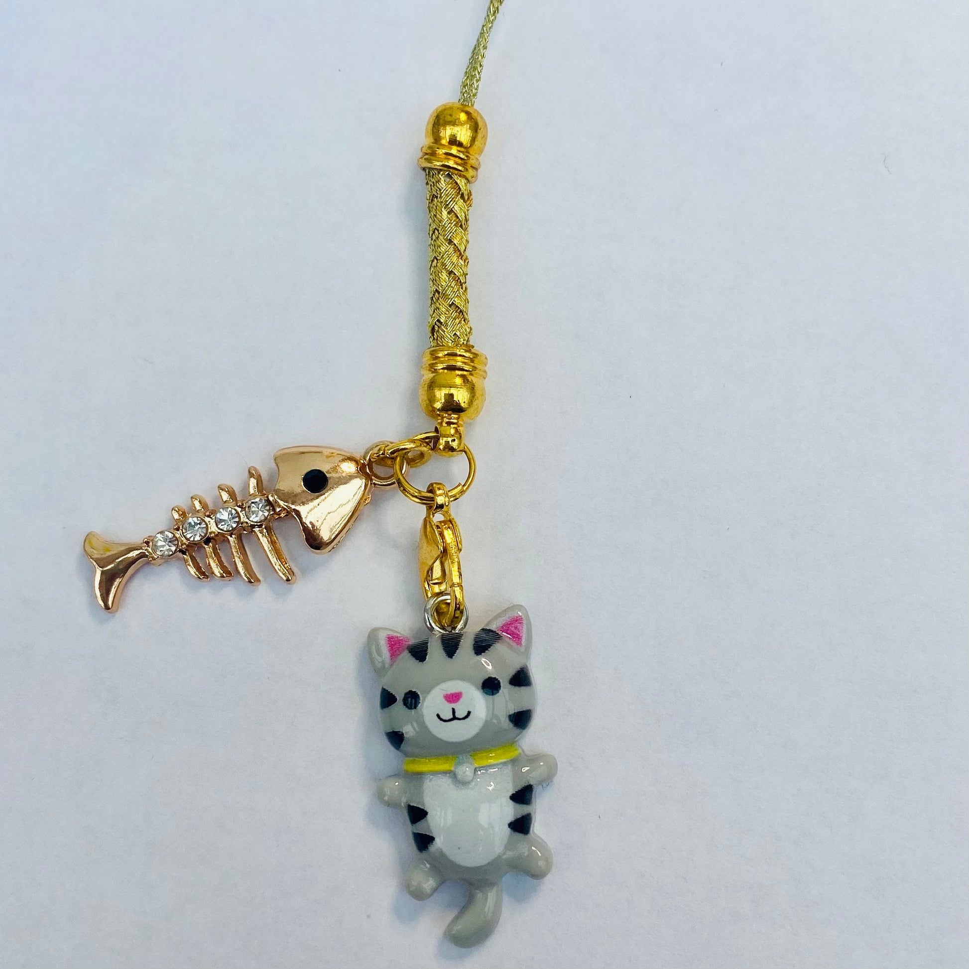 Phone charm anime kawaii cute cat fish dust plug /phone hanger/ cat keyring /keychain tablet phone laptop cell lanyard pencil case zip bag