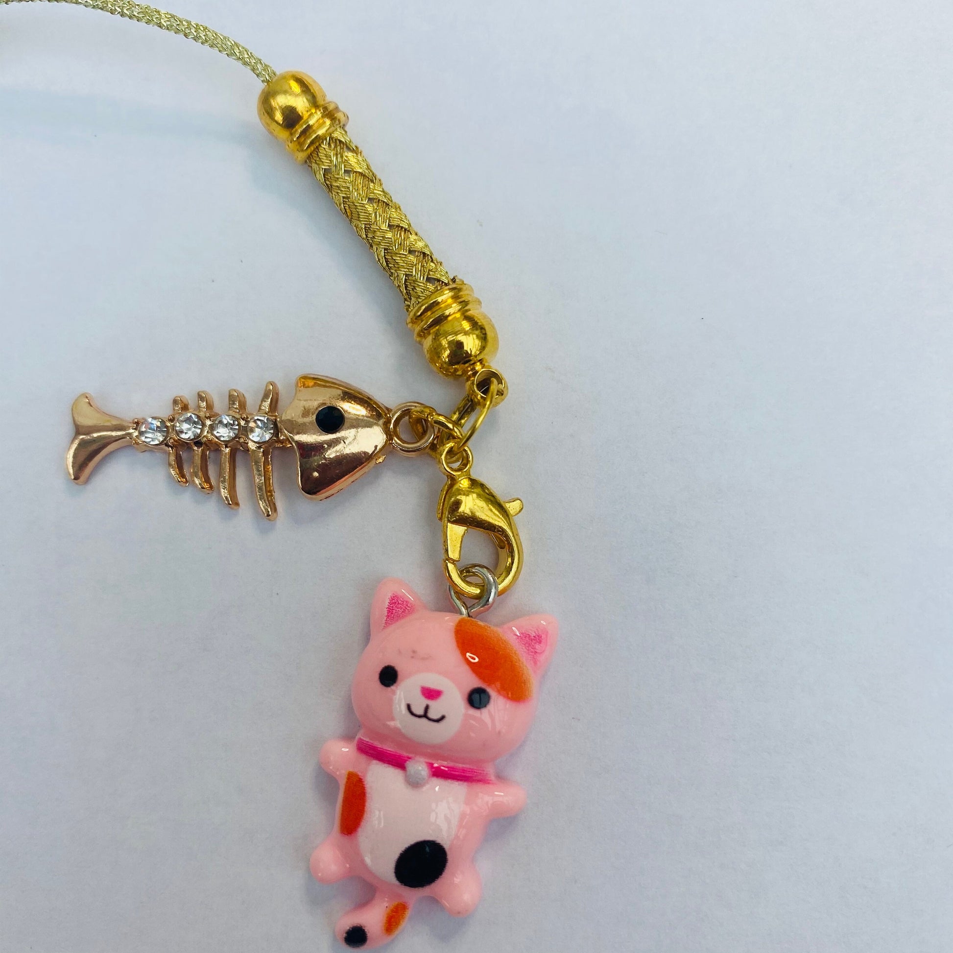 Phone charm anime kawaii cute cat fish dust plug /phone hanger/ cat lover/keychain tablet phone laptop cell lanyard pencil case zip bag