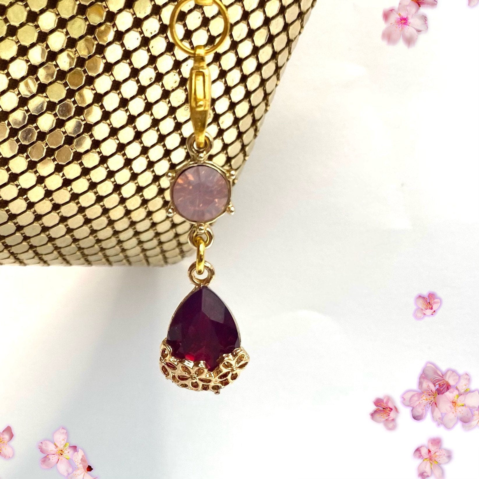 Phone charm deep pink sakura crystal gems glass magical cosplay castle japanese