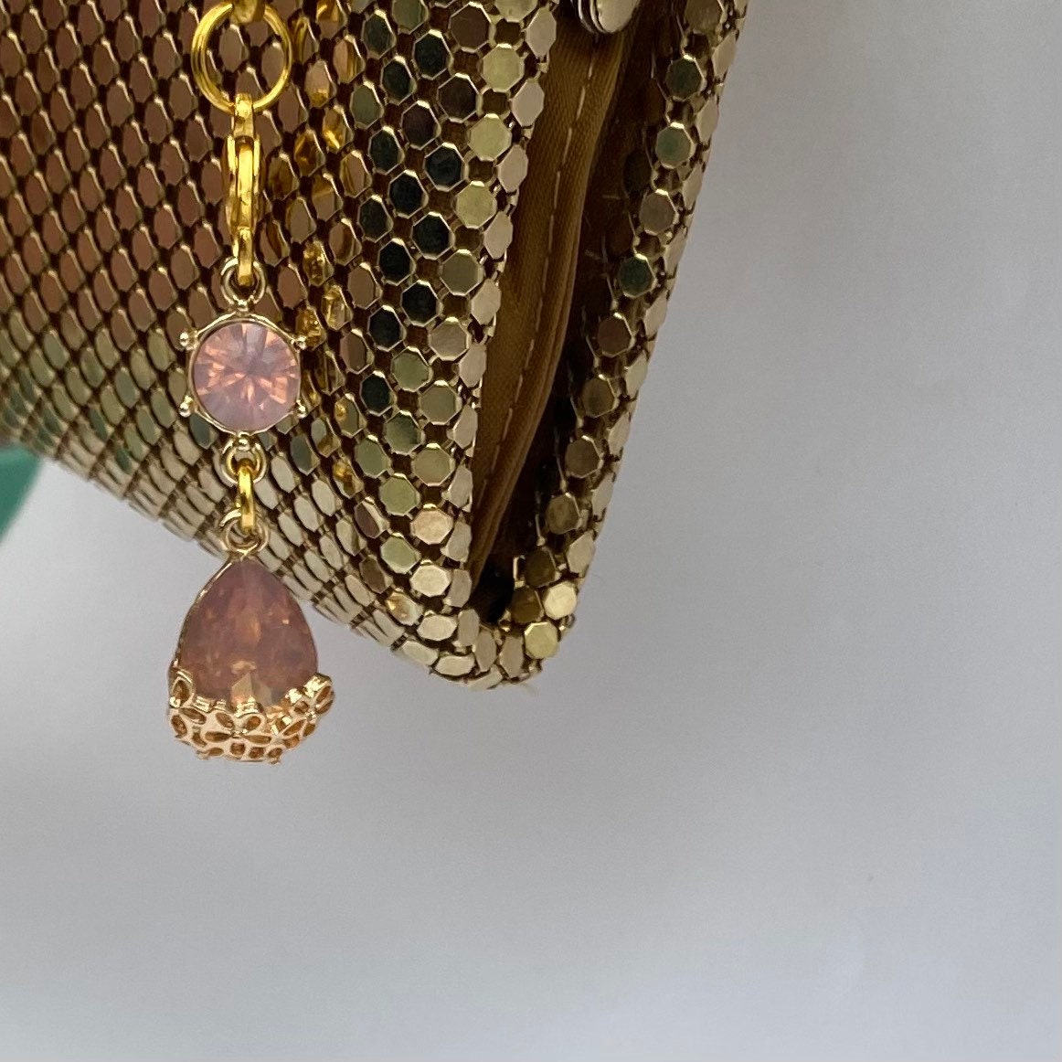 Anime moving castle phone charm on a good quality rope. Pink crystal sakura gems set in claw setting. Great as a tie on zipper pull bag accessory mobile gaming devices air pod case decoration. Really pretty in the light.